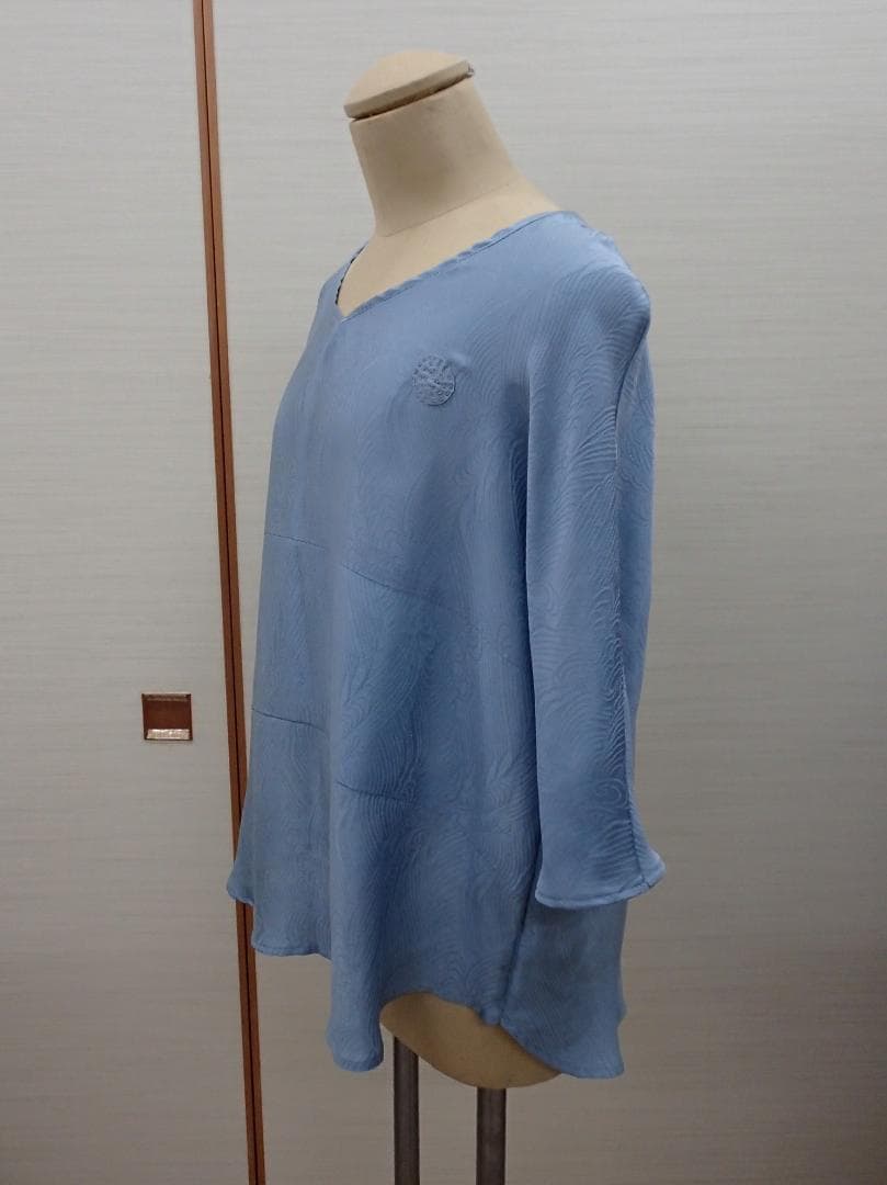 ハンドメイド 着物リメイク 正絹 無地小紋 ブラウス Vネック シャツ トップス