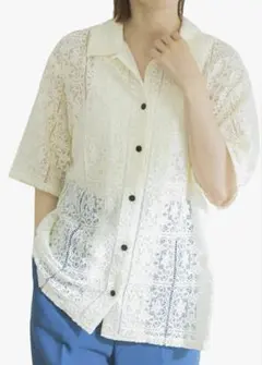 【アーバンリサーチ】半袖ブラウスジャケット Vネック(O)コットン混 花柄レース