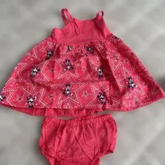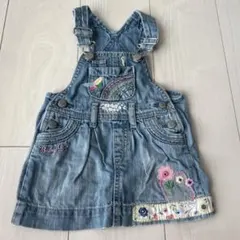 青と白のチェック柄にフリルと刺繍が施された、baby GAPの6-12ヶ月用ワンピース。