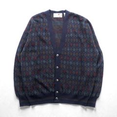 ニットカーディガン 短丈 太線チェック ネイビー×イエロー L シティボーイ