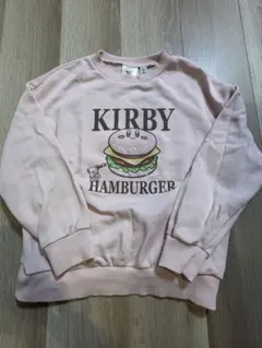 カービィの刺繍が施された柔らかいピンクのスウェットシャツ。