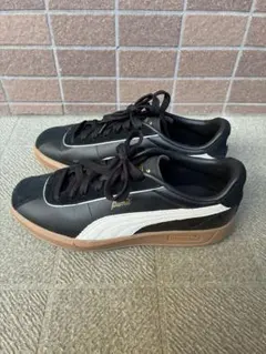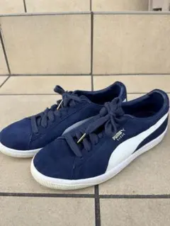オレンジのスエード素材で、ラバーソールのローカットスニーカー。
