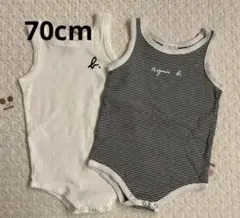 美品 アニエスベー 80cm ピンク 白 カバーオール ロンパース ボタン 長袖