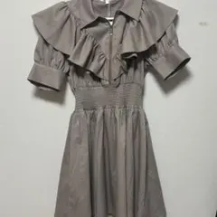 rienda テーラードカラーミニフレアハーフニットワンピース