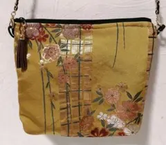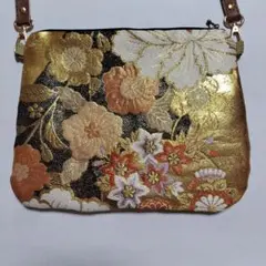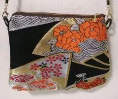 赤 花模様 着物袋帯 和風 ミニショルダーバッグポーチ コサッシュ リメイク