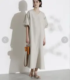 ライトグリーンの編み込みデザインのロングワンピース、ゆったりとしたシルエットで快適な着心地。