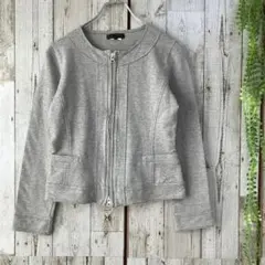 女性らしいすっきりとしたシルエットのカラーレスジャケット。オン・オフ問わず使えるカッチリとなりすぎないデザイン。1枚あると便利なアイテムです。品の良いライトグレーのカラーでオススメです。
