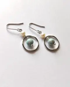 ピアス 天然石 パープルコッパーターコイズ 2連 サージカルステンレス