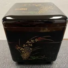 重箱 黒地金色鶴 赤内装