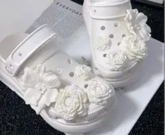 クロックス サンダル ジビッツ 飾り 花 パール白 ホワイト 14ピース