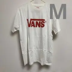 ホワイトのVANS Tシャツ、Mサイズ、ロゴプリントデザイン。