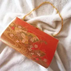 紫色の格子柄の巾着バッグ、和装に最適。