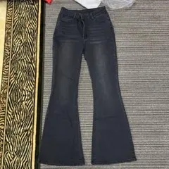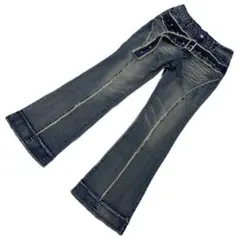 デニムブルーのブーツカットデニム、スカートとパンツのユニークなデザイン。