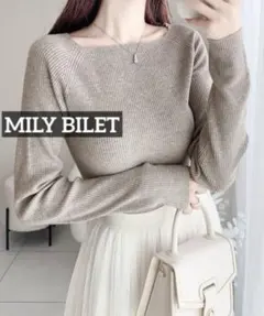 mily bilet スクエアネックリブニットプルオーバー アイボリー