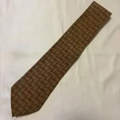 オリーブグリーンとオレンジのチェック柄のシルクネクタイ。