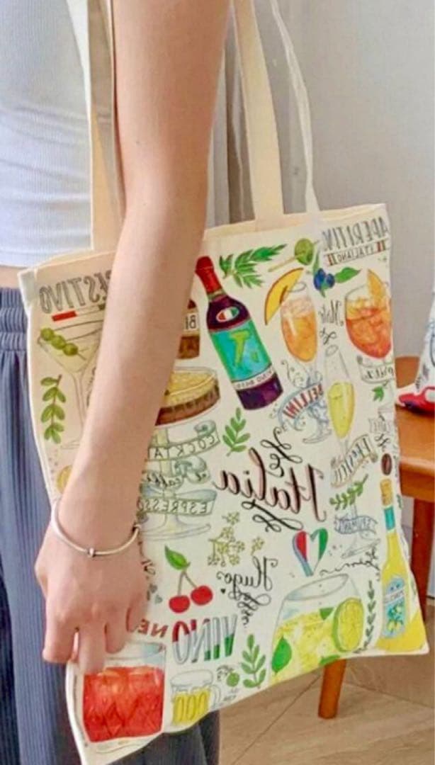 - デザイン: イタリアの飲み物や食べ物のイラストが描かれたトートバッグ