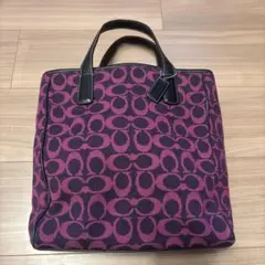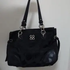 良品 COACH トートバッグ トートバッグ ブラック シグネチャー 肩掛け