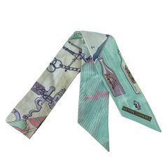 ピンクの背景に馬具を描いたHERMESのスカーフ。