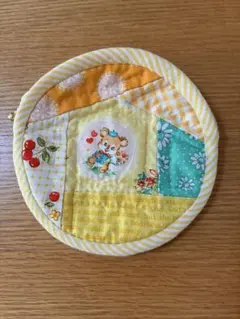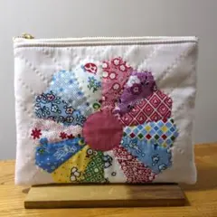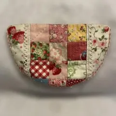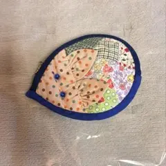 パッチワークポーチ青系チェック柄