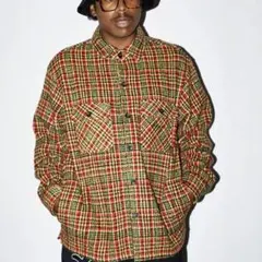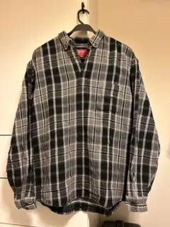 ネイビー系のオンブレチェックシャツで生地はそこまで厚くないのでインナーでも使えます。