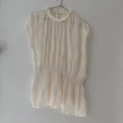 レースとプリーツのデザインが特徴的なノースリーブトップス。