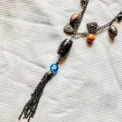 ユニークなドロップ型の貝殻ペンダントネックレス、ホワイトとブラックのビーズが特徴。