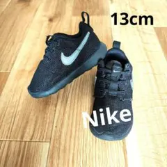 NIKEのブラックスニーカー、ベルクロストラップ付きで着脱が簡単。