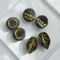 黒と灰色のツートンカラーの陶器ポット、手書きの装飾が特徴。