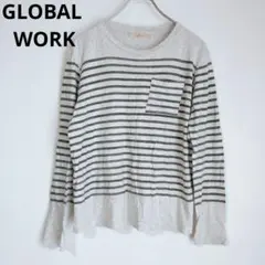 グローバルワーク【M】ストライプ長袖カットソー バイカラー コットン 洗える