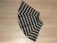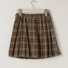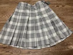 ベージュと黒のチェック柄スカート、黒のベルト付きで裏地あり。