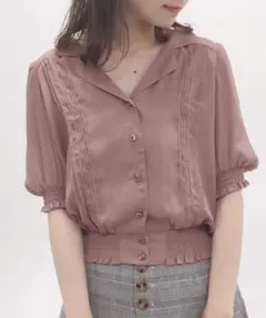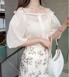 袖のボリューム感が可愛く、パールボタンが付いていてとても可愛いお洋服になっています。