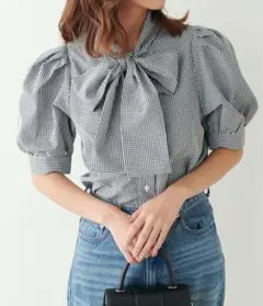 【美品】NICE CLAUP 袖ボリュームパールボタンブラウス