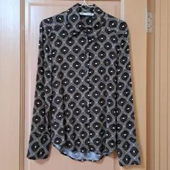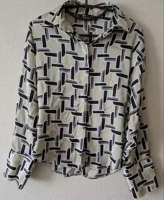 フリル付きのグレーシャツ、ウエスト部分はゴムでフィット感あり。