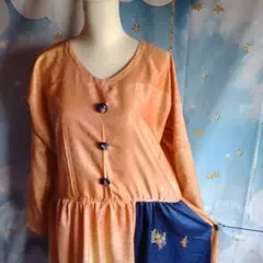 【可愛い】青色花柄レディース フレアワンピース L サイズ