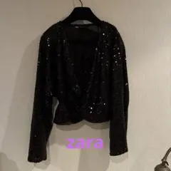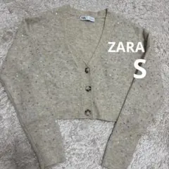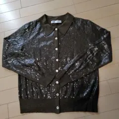 ZARA ザラ スパンコール付きカーディガン ポロカラーカーディガン カーキ L