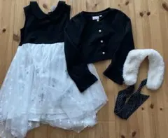 クリーム色のセーターとチェック柄スカートのセット、白いシャツとボウタイ付き。