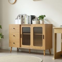 使いやすさとおしゃれを両立するキャビネット/サイドボード、スペースを最大限に利用できます。【おしゃれデザイン】ガラスを採用、圧迫感や重さが少ないのが特徴です。扉で隠し生活感のない洗練された雰囲気を演出、置くだけでセンスのあるお部屋に。