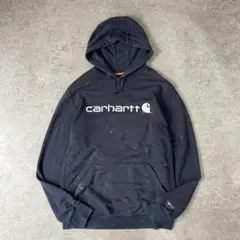 Carhartt 袖ロゴパーカー 黒 M ルーズフィット フェード USA企画
