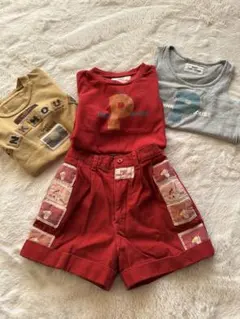 赤いクマ柄のTシャツ、カジュアルで可愛いデザイン。