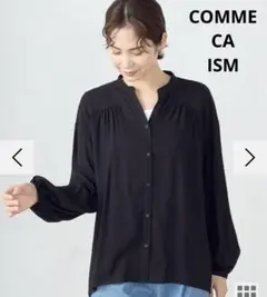 美品【コムサイズム】ユーネックストレッチスパンコールデザイン体型カバーチュニック