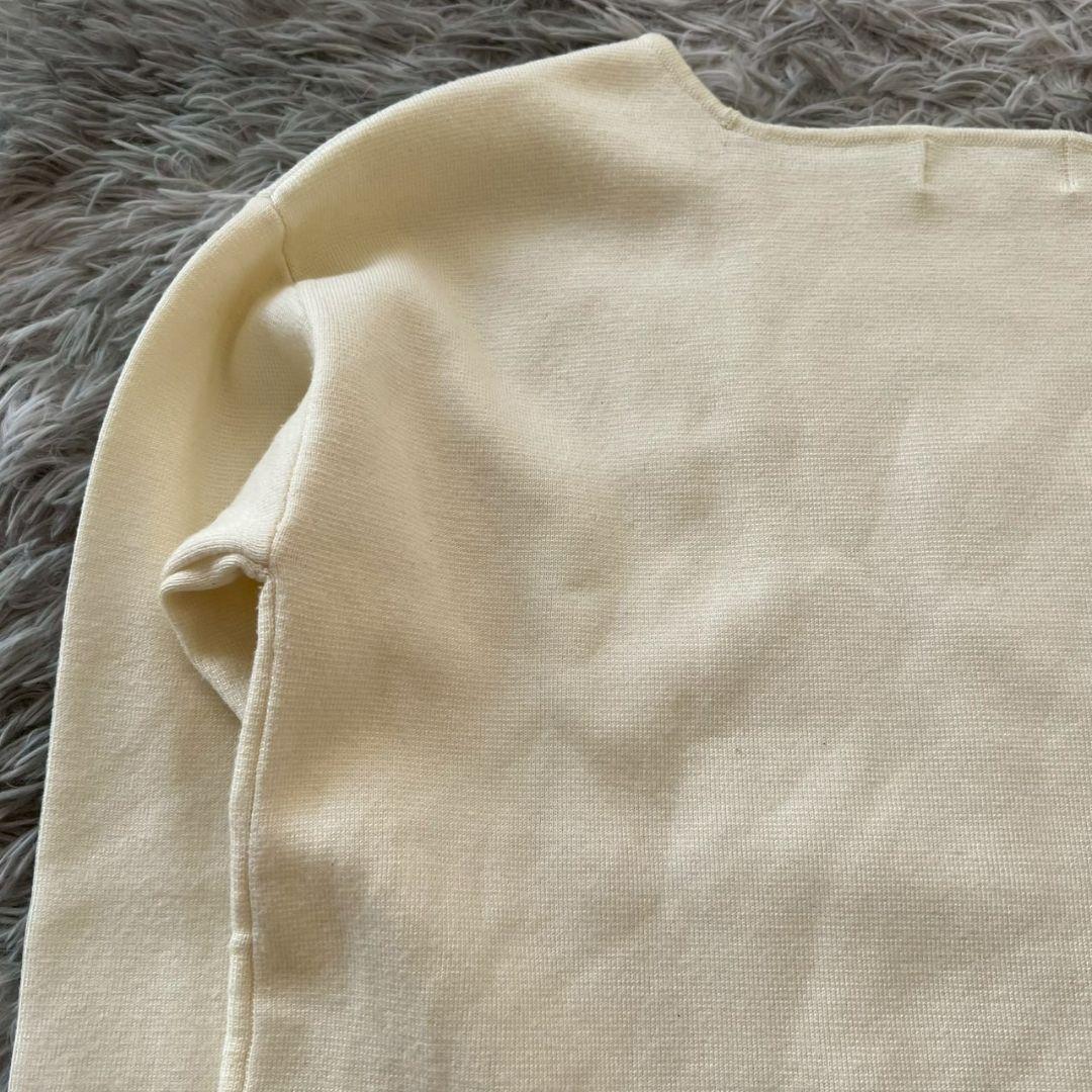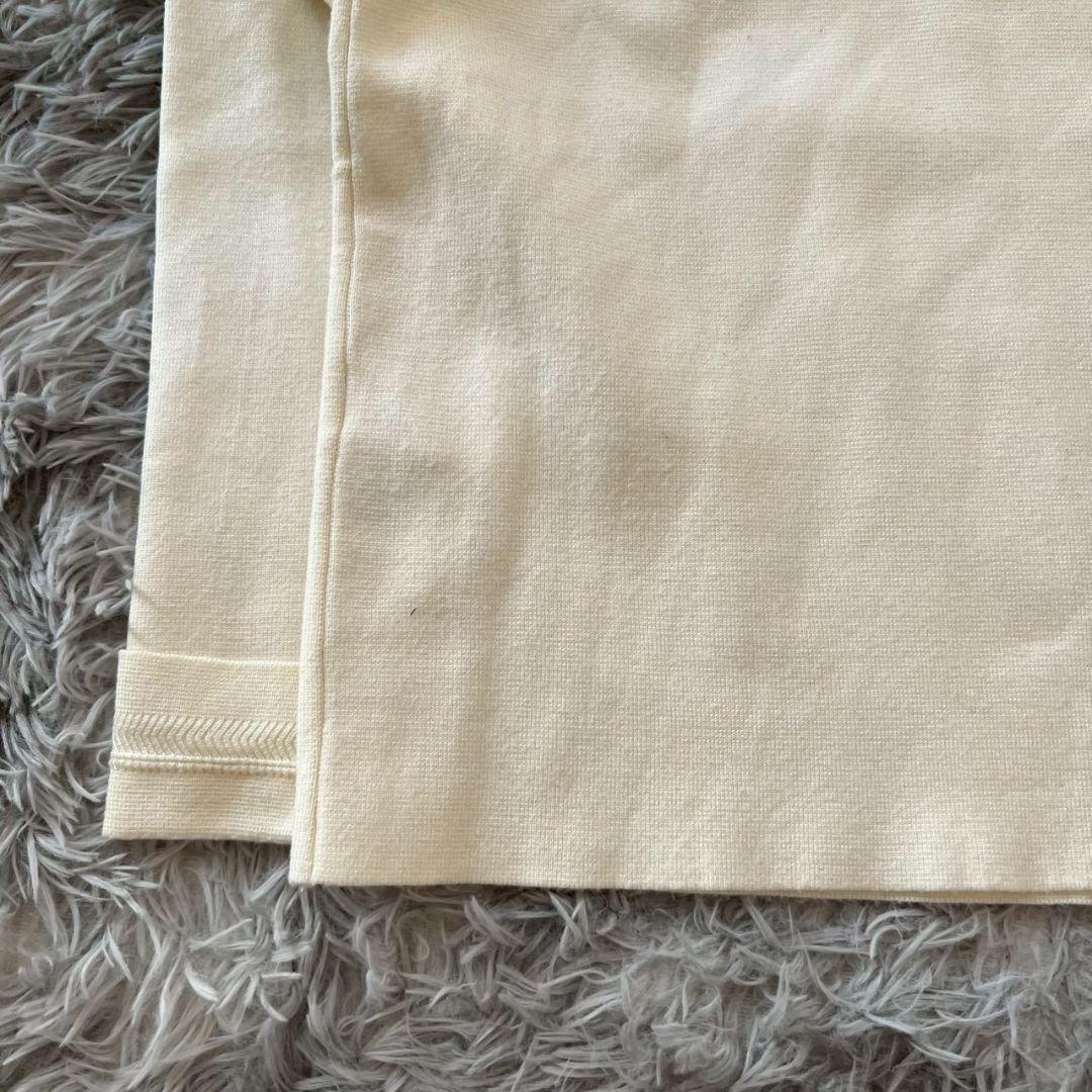 アイボリーの長袖トップス、シンプルで着回しやすいデザイン。