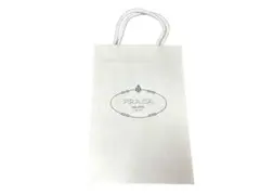 PRADAのホワイトショップ袋、リボン付きで内側はミントグリーン。