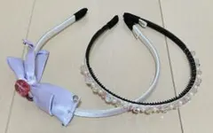 リボンとビーズ装飾が施された黒いカチューシャ。