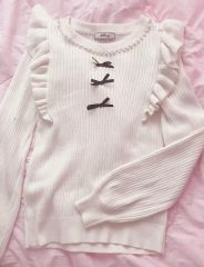 スカートとニットに糸のほつれが複数あります。