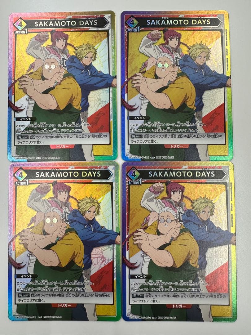 ユニオンアリーナの特別交流会プロモカード、SAKAMOTODAYS 4枚セットです。