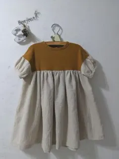 ハンドメイド花柄フリル袖ワンピース 110cm