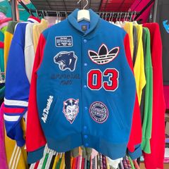 adidasのグリーンの3本ラインスタジャン、Lサイズ、ナイロン素材。ほぼ着てません。
