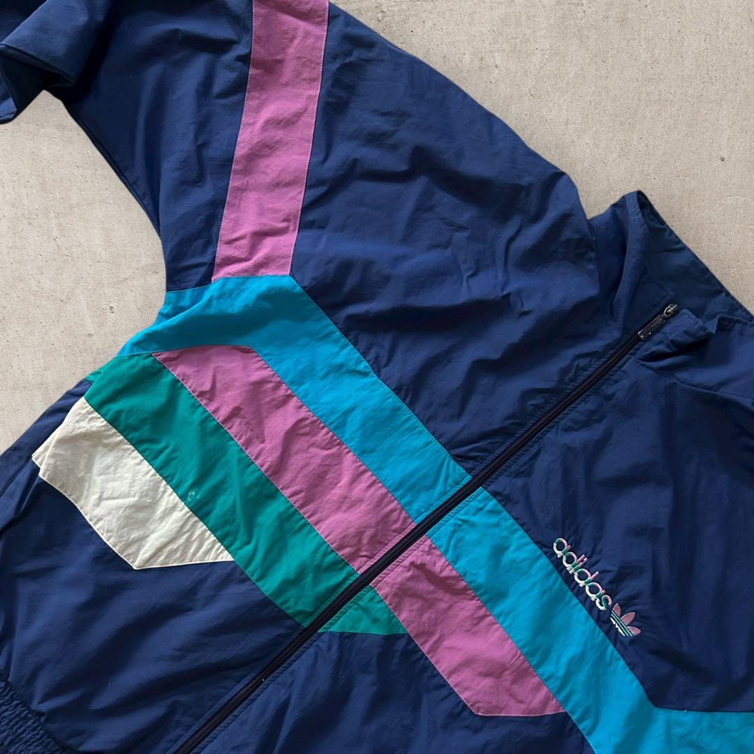 希少vintage adidas80sナイロンジャケットトレフォイルロゴ刺繍古着