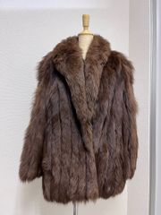 高級毛皮ブランドSAGA FOXの本毛皮コートです。上質なフォックスファーを贅沢に使用し、存在感抜群。ふわふわとした肌触りと高級感のある見た目で、特別なシーンやフォーマルな場にもおすすめです。