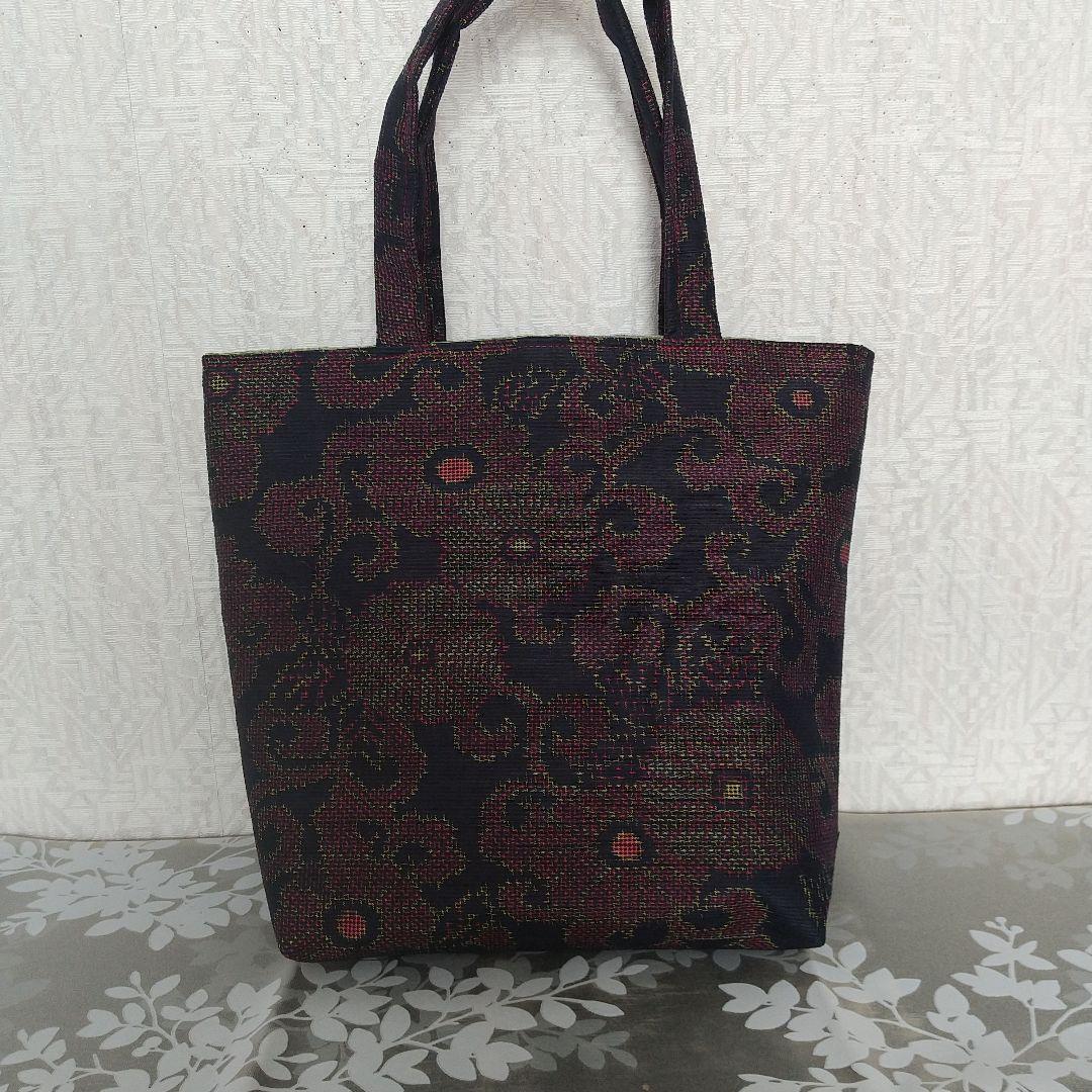 紬着物地リメイクの少し大きめハンドメイドトートバッグです